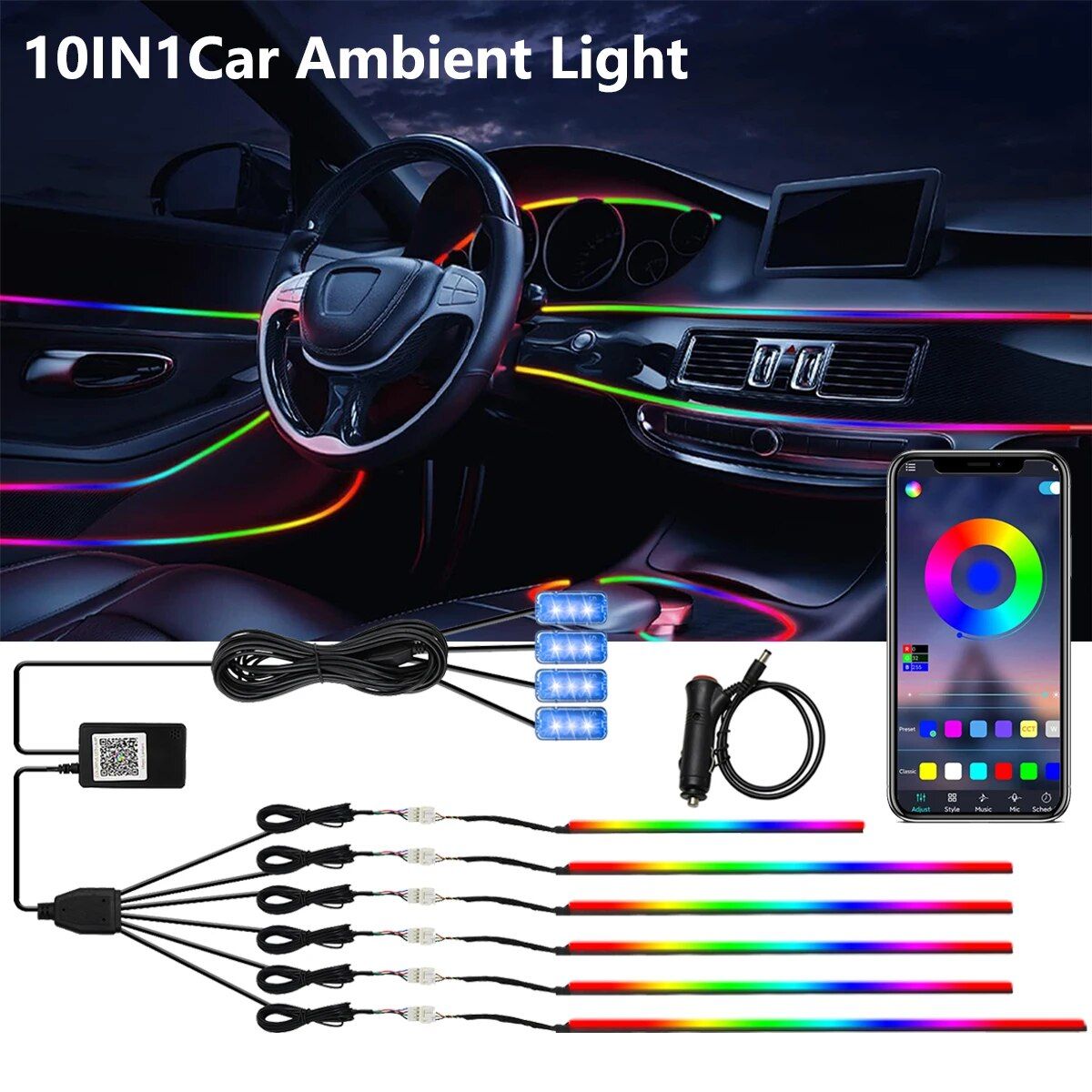 Step into an ambiance of elegance and delight every time you embark on a journey. With our 10-IN-1 Ambient LED Car Interior Light with Acrylic Rainbow Strip, drive in style and luxury. Immerse yourself in an enchanting atmosphere where every inch of your car resonates with vibrancy, charm, and sophistication.
