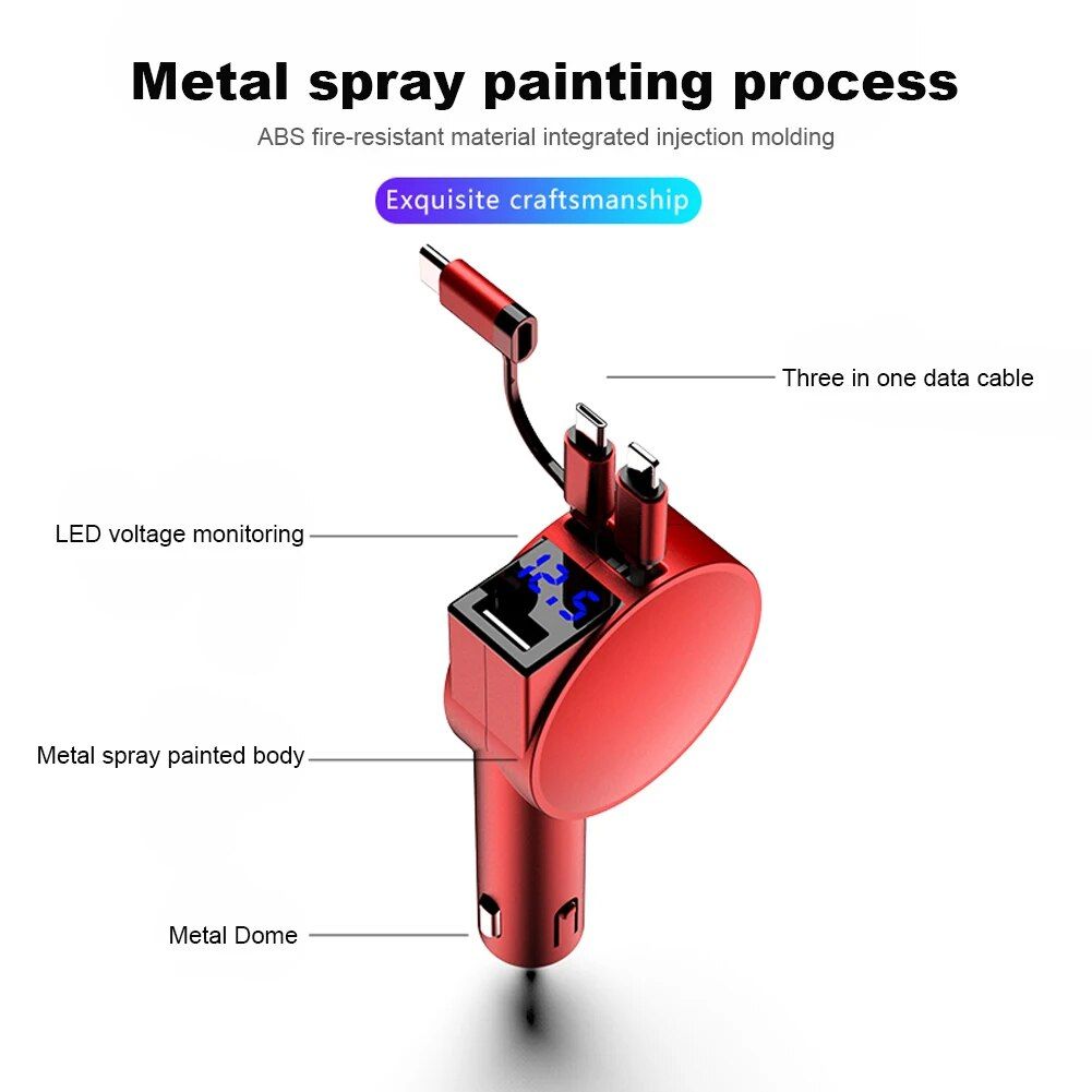 Step into the future of rapid charging with our innovative 3-in-1 Dual Port Retractable Car Fast Charger. Engineered for speed and designed for convenience, this is not just a car charger—it’s an experience.