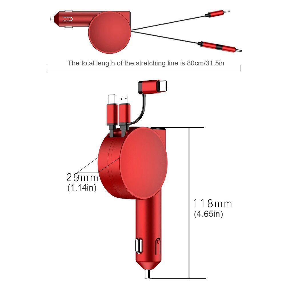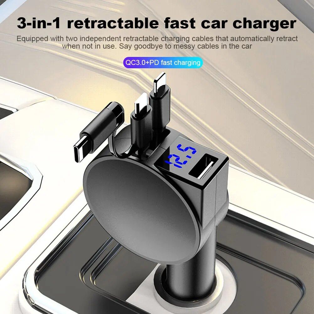 Why settle for the ordinary when you can have the best? Upgrade to the 3-in-1 Dual Port Retractable Car Fast Charger today and embrace superior charging like never before!