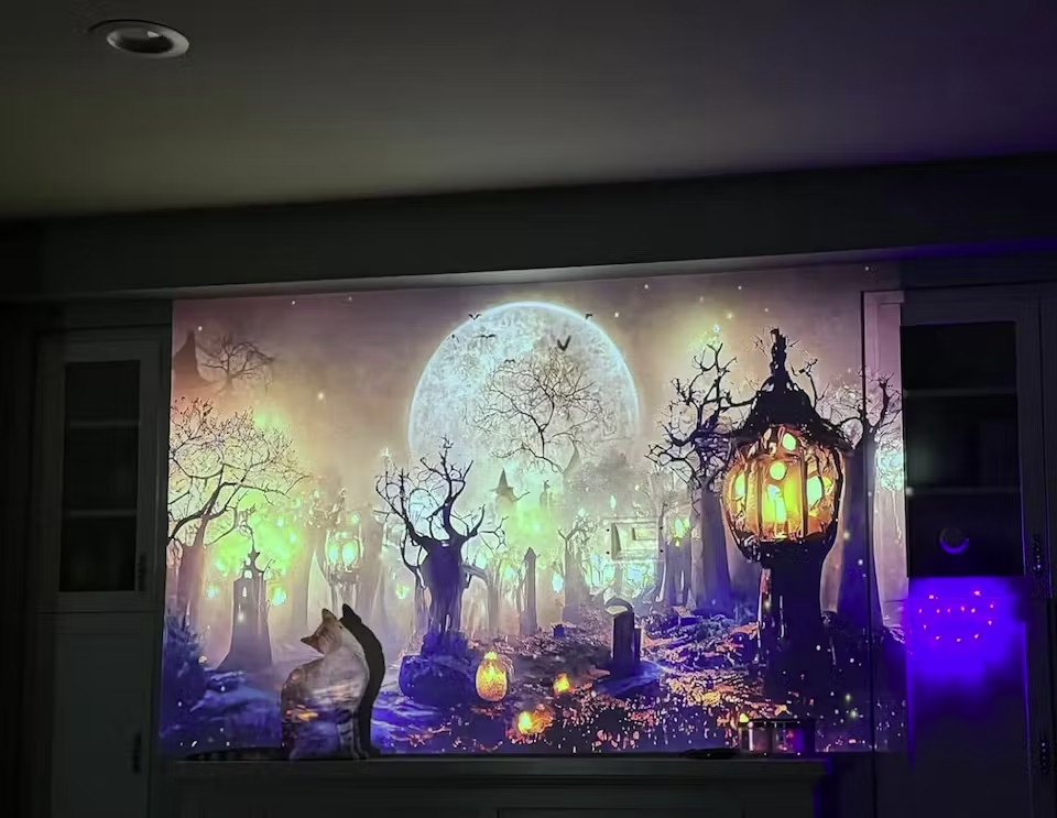 This projector is fantastic. The image quality, Harman/Kardon sound, and design are all top-notch. The only minor issue is a light halo if you're not right in front of it, but that's more about the room than the projector.