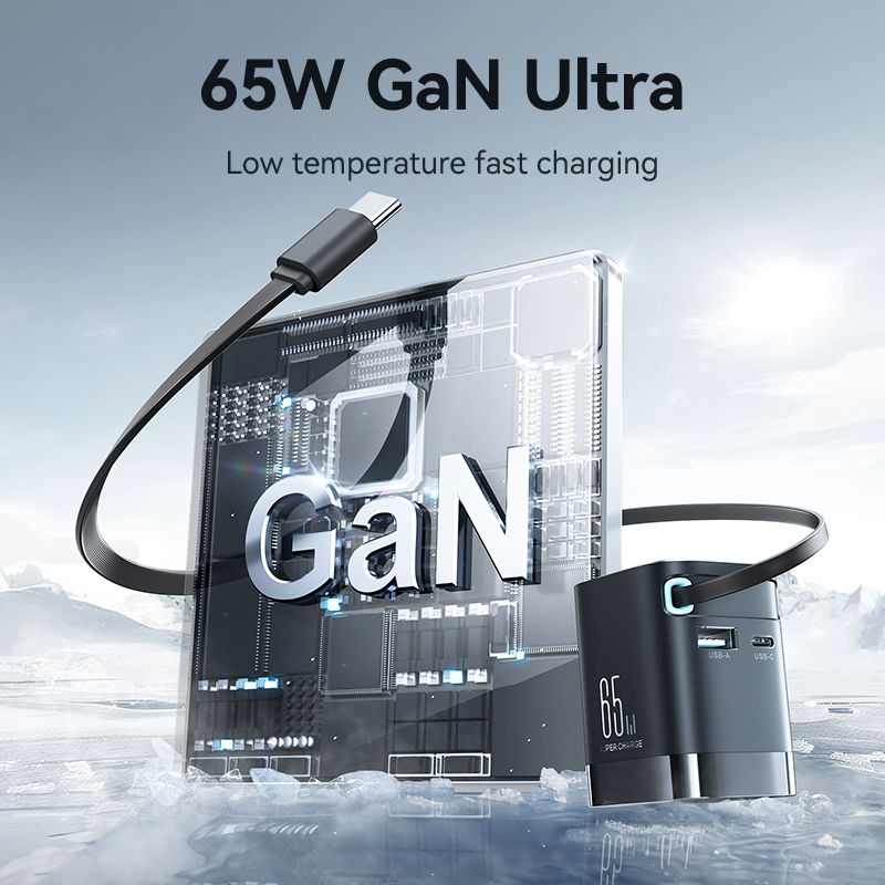 Engineered with advanced Gallium Nitride (GaN) technology, this charger delivers high-efficiency power with less heat and energy waste. Its 65W maximum output supports fast charging for multiple devices simultaneously, while the retractable USB-C cable stretches up to 27.5 inches for added flexibility and convenience. The charger’s compact size, foldable plug, and universal voltage compatibility make it the perfect travel companion, offering seamless charging wherever you are.