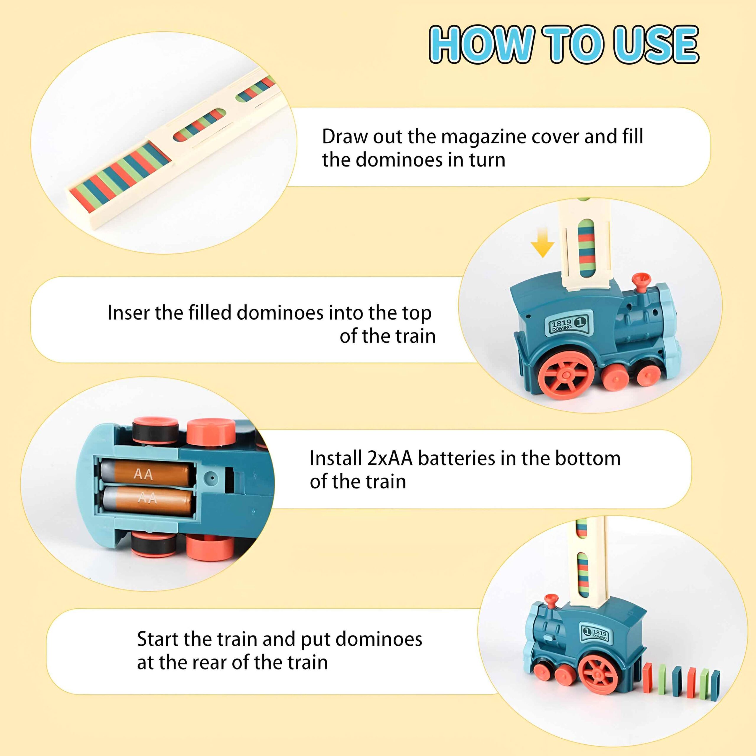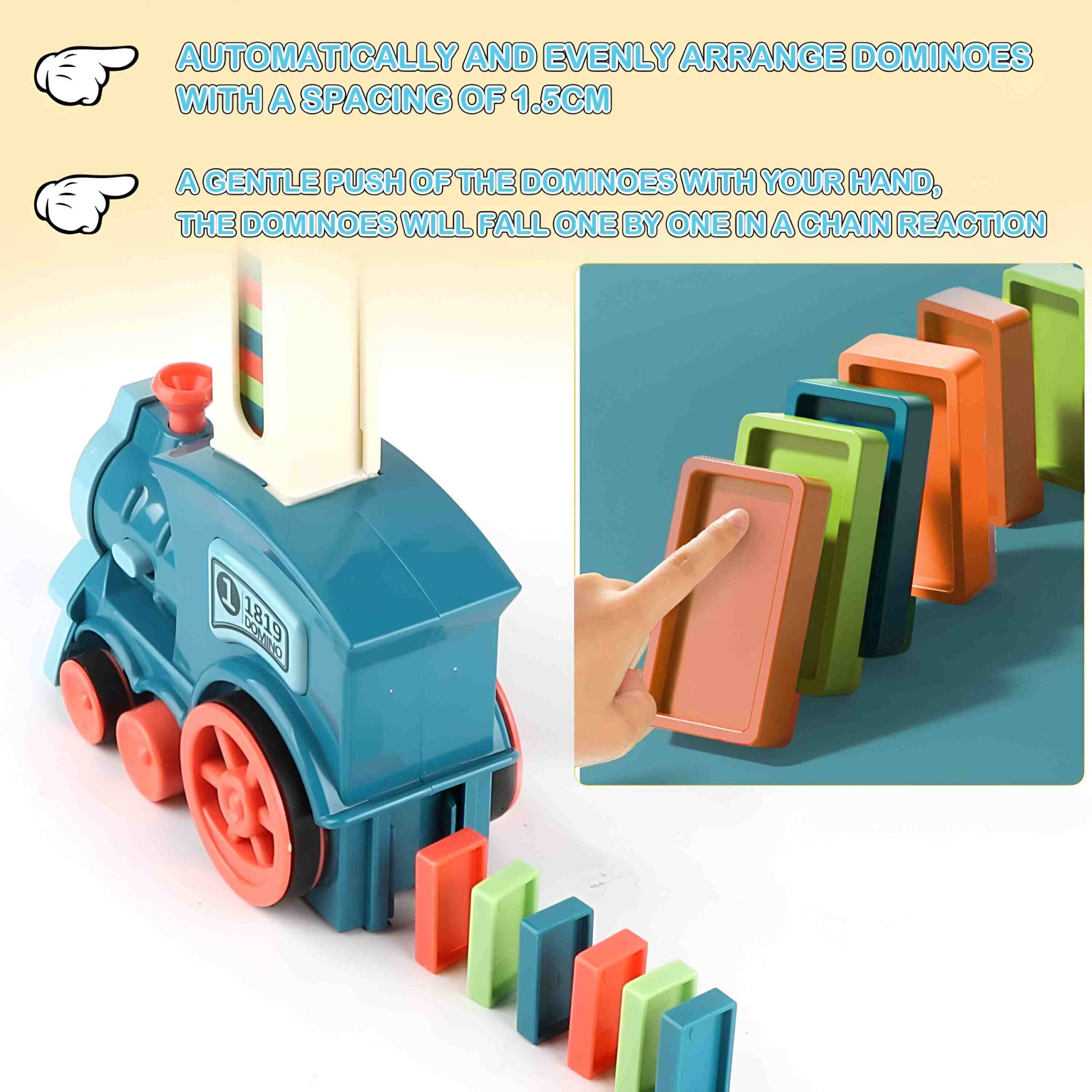 - Easy Operation: Load the dominoes into the train, switch it on, and watch it create precise patterns automatically.