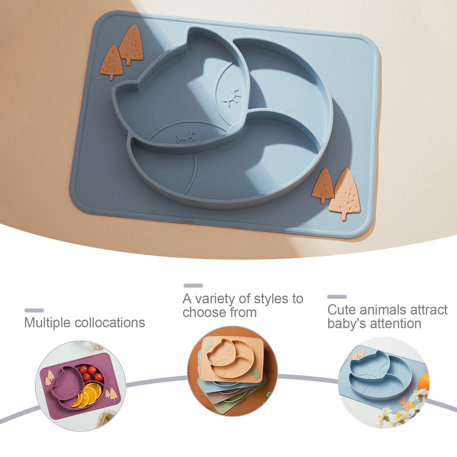 This silicone dinner plate stands out with its perfect combination of safety, functionality, and child-friendly design. The cartoon fox pattern engages young children, turning everyday meals into exciting moments. The premium silicone material ensures no harmful chemicals come in contact with your baby’s food, while the non-slip base provides added stability on any surface.