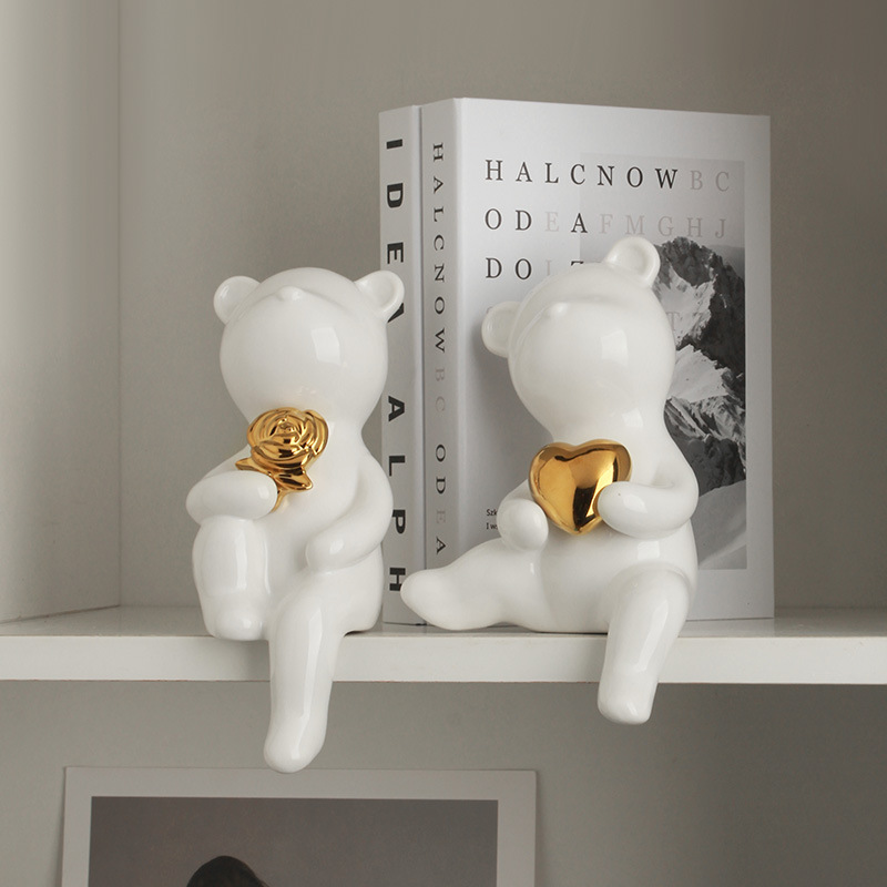 Elevate your home decor with this Light Luxury Ceramic Bear Ornament. Its whimsical design, paired with high-end craftsmanship, makes it an ideal piece for any room in your home. Add a touch of elegance and fun to your living space today!