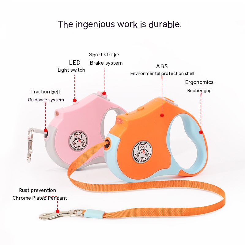 - Retractable design: Effortlessly control leash length with a simple push of a button