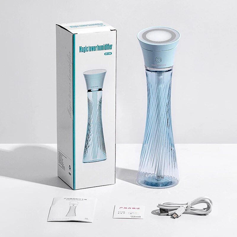 The basic features of our Ultrasonic Humidifier include a 250ml water tank, ultrasonic mist technology, and a whisper-quiet operation. It’s designed for convenience with a USB charging port, and with the inclusion of a colorful LED light, it creates an ambience that’s as serene as it is moisturizing. Perfect for use day or night, it’s particularly best used when you need to unwind after a long day or to keep the air comfortable during sleep.